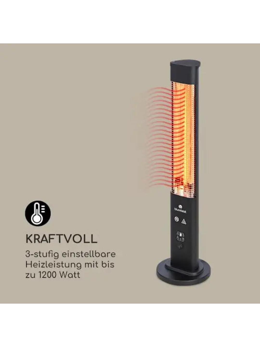 Інфрачервоний електричний обігрівач Blumfeldt Heat Guru Plus Black (1,2 кВт) — це універсальне рішення для швидкого та комфортного обігріву як у приміщенні, так і на відкритому повітрі. Він створений для тих, хто не готовий залежати від сезону та прагне тепла саме тоді, коли це потрібно — на терасі, балконі чи в кімнаті.