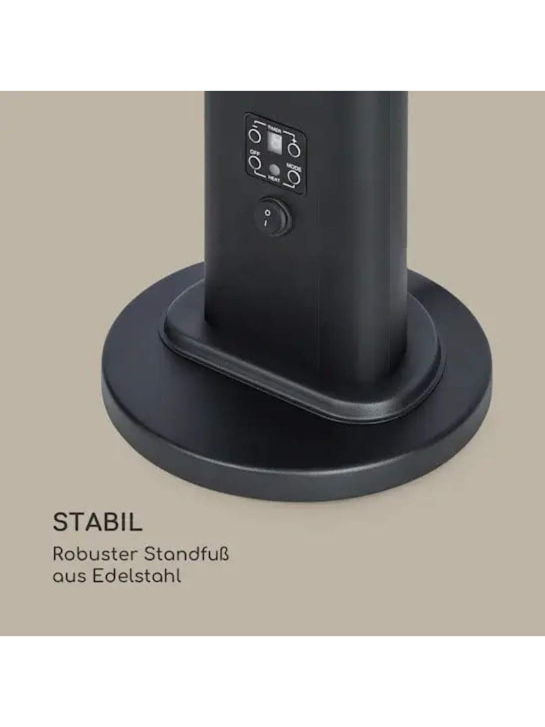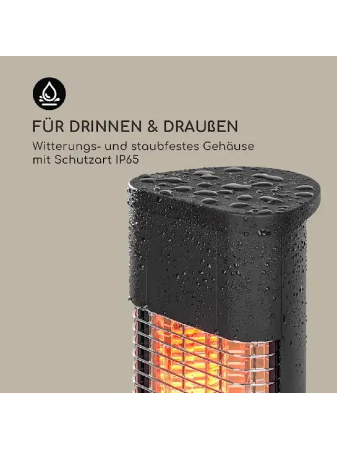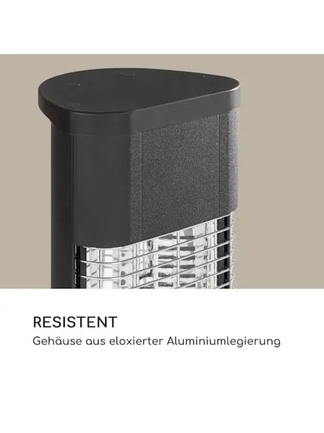 Модель відрізняється продуманою ергономікою: керування здійснюється за допомогою інтуїтивного цифрового дисплея або пульта дистанційного керування. Корпус із анодованого алюмінію має високий клас захисту IP65, що гарантує стійкість до пилу та вологи й дозволяє безпечно використовувати обігрівач на вулиці за будь-яких погодних умов.