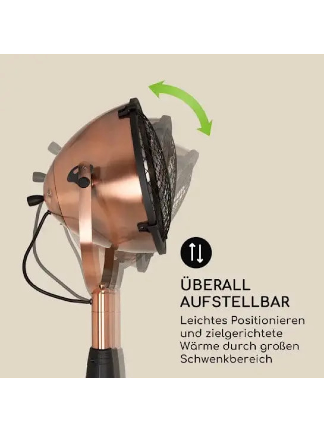Модель підтримує три режими роботи — 900, 1200 та 2100 Вт, що дозволяє адаптувати інтенсивність обігріву під конкретні погодні умови. Поворотна головка забезпечує точне спрямування теплового потоку.