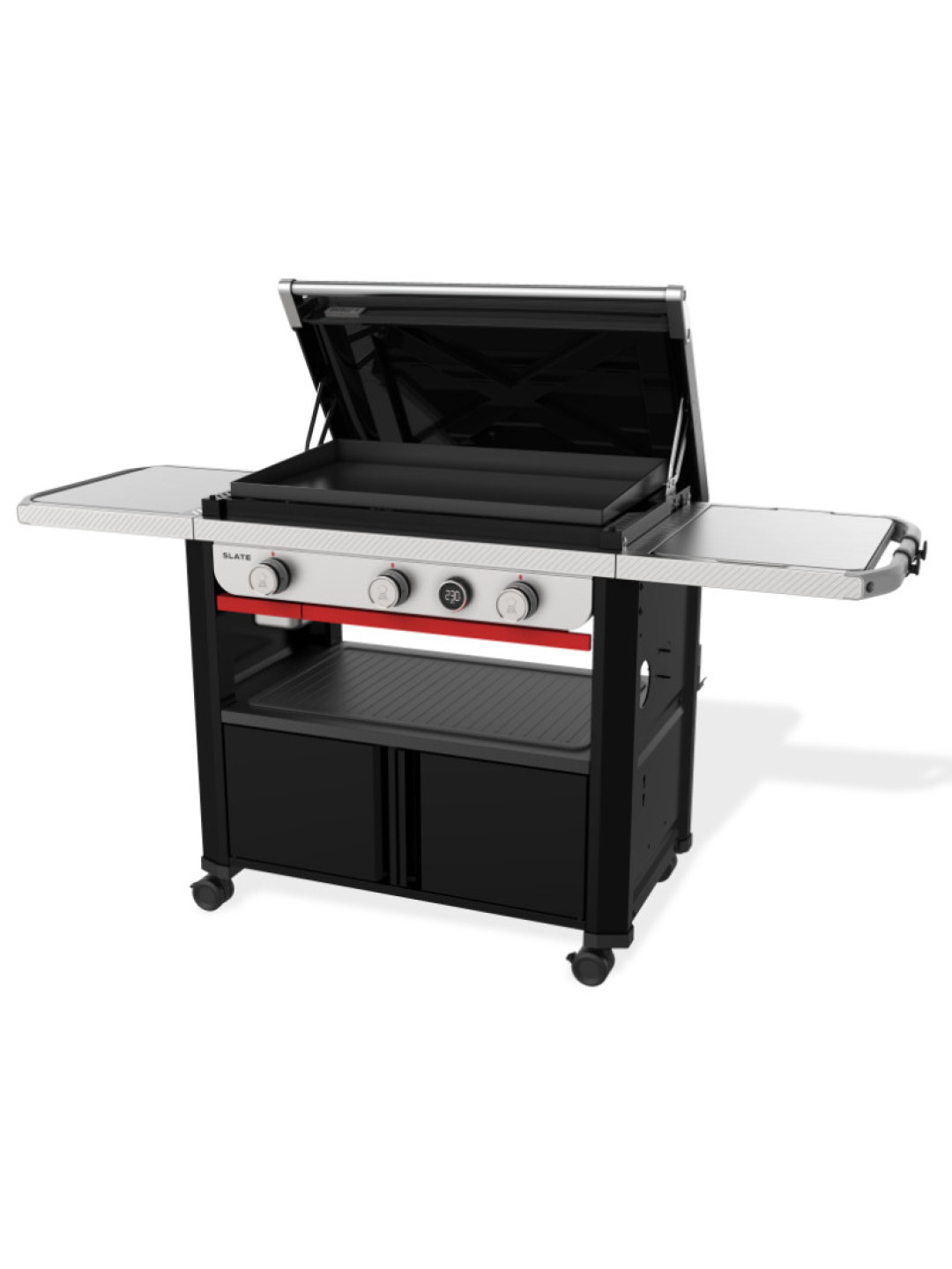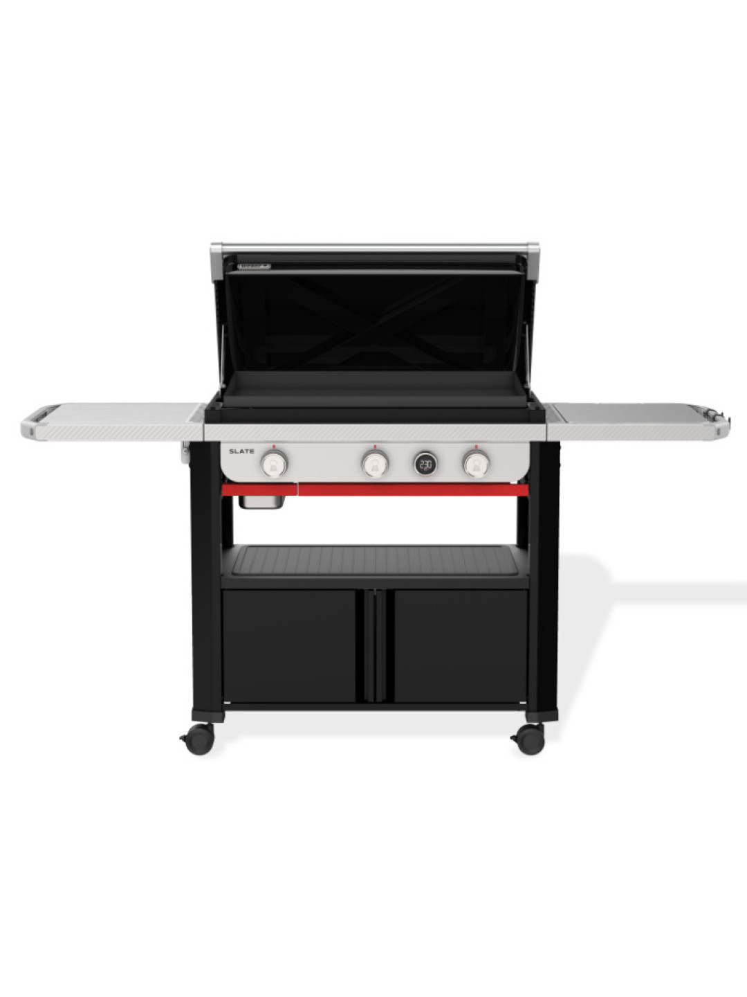 Weber SLATE GPD 76 см Premium Griddle оснащений трьома високоефективними пальниками, які швидко виводять поверхню на робочу температуру та стабільно її підтримують. Електронний термометр з відображенням температури поверхні дозволяє точно контролювати процес приготування і досягати ідеального результату - від делікатного прожарювання до інтенсивного обсмажування.